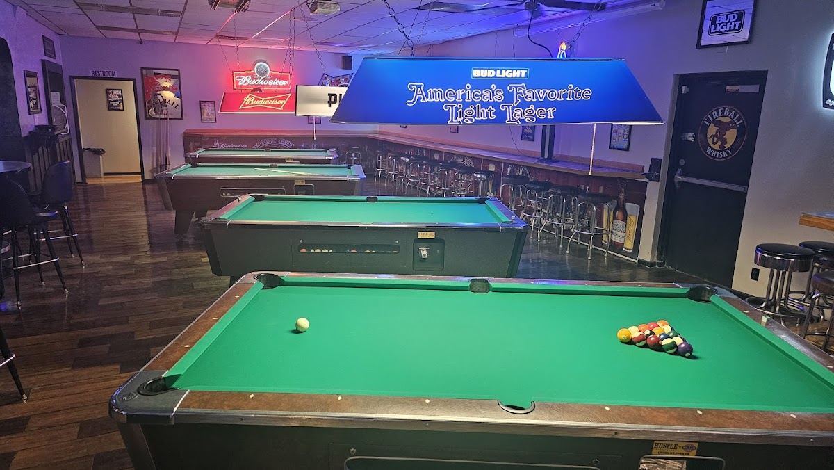 This bar for 21+ is a legend of a local hangout with 4 pool tables, multiple draft beers, and a small outdoor area. The bartenders are fun and make great cocktails. There is no food made here, so they allow you to bring in outside food or even have food delivered to yourself here. The bar has been refurbished with fresh paint and beautiful flooring, along with new felt and leveled tables as of May 2025. There is music via AMI jukebox with the app or can use cash to play tunes. It's a fun place to meet up with friends. Wednesdays: Karaoke at 7:30